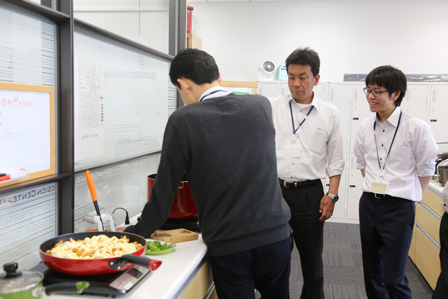 その素材を使って料理をするのは社員のみんな!食材を切るところから始まり、片付けまで、チーム毎に毎日交代しながら楽しくやっています!