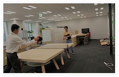 当社の業務は、パソコンに向かう時間も多いため、運動不⾜にならない様に卓球台も新設!卓球は程良い運動となり、リフレッシュ効果も抜群です!